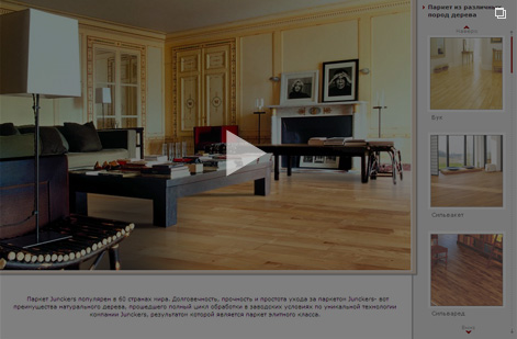 Чтобы Вы могли оценить качество, внешний вид и удобство монтажа продукции Junckers, представляем два интерактивных ролика, в которых Вы можете «примерить» различные виды паркета к интерьеру.