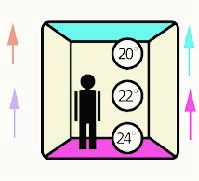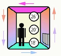 При традиционной системе обогрева радиаторными батареями, нагретый воздух поднимается к потолку, образуя «теплую подушку», затем остыв, опускается к полу. |