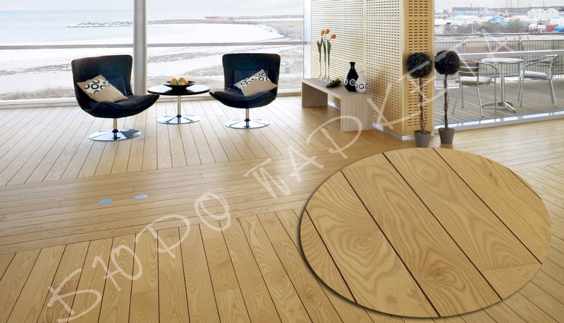 - Для всех своих продуктов компания Junckers предлагает уникальную неопреновую полосу которая помогает дереву более адекватно реагировать на подогрев и придаёт полу вид палубы. Как это выглядит, вы можете увидеть ниже.